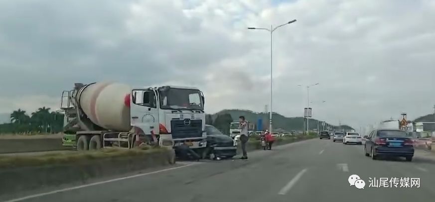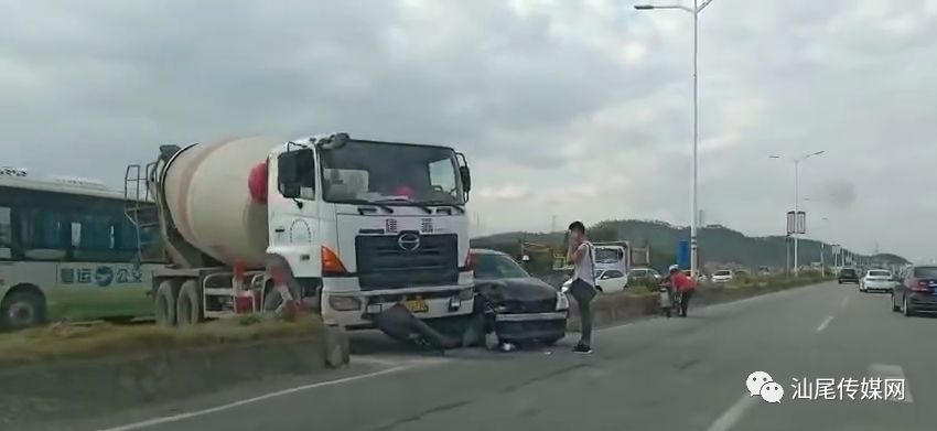 2019年10月16日,海丰县埔边路段发生一起交通事故!一辆混泥土车与一辆小车发生碰撞,导致小车车头损毁严重!具体情况不详,以官方公布为准。