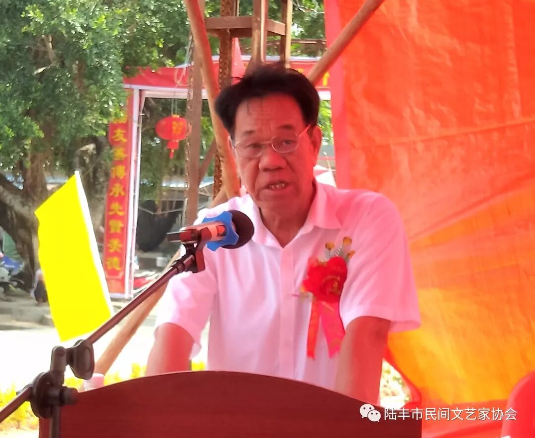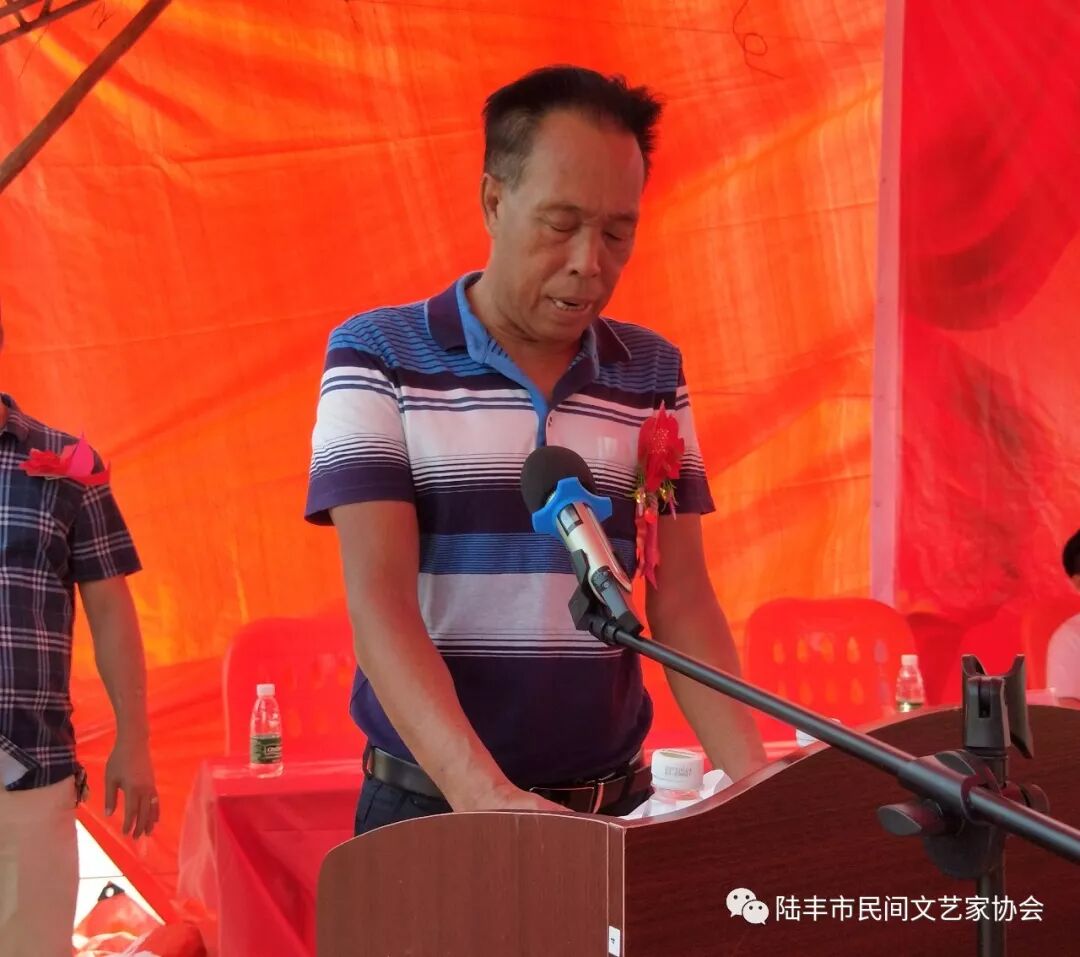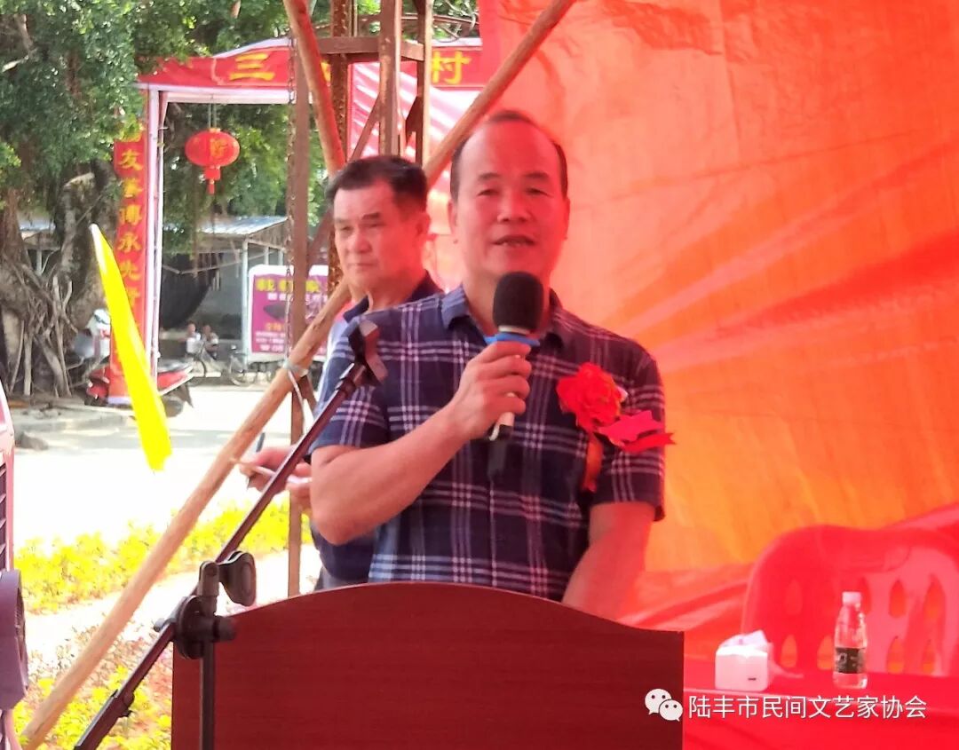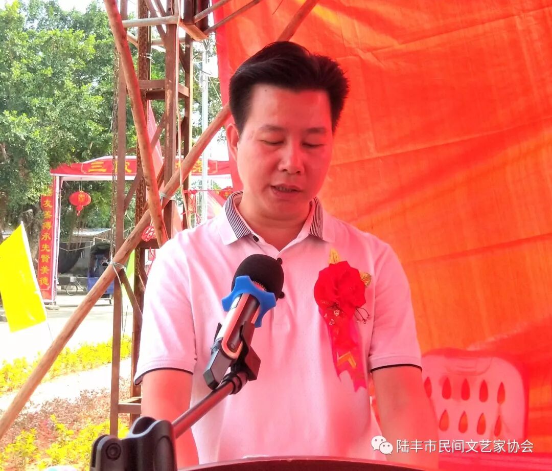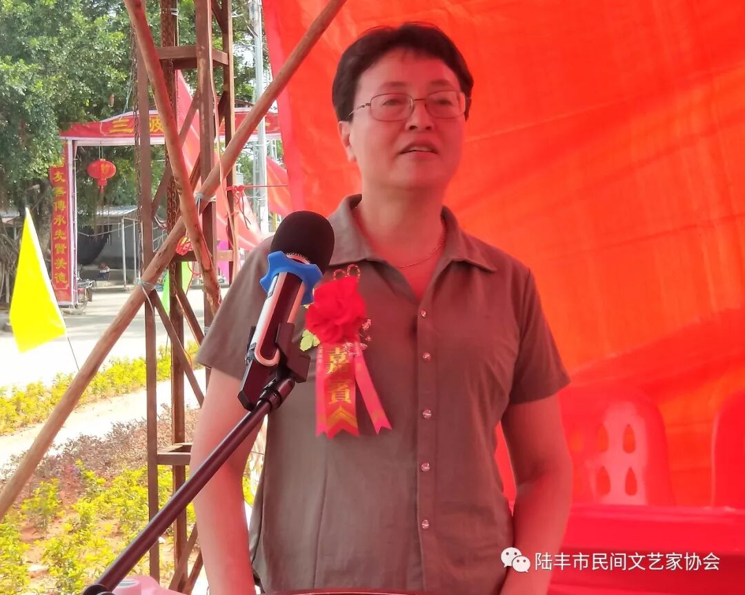 ↑陆丰市文联主席郑娟春作讲话,对内湖镇三陂村表示热烈祝贺,并提出指导意见。