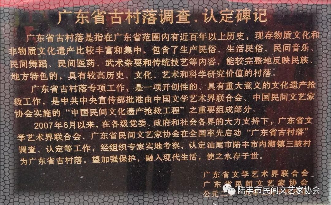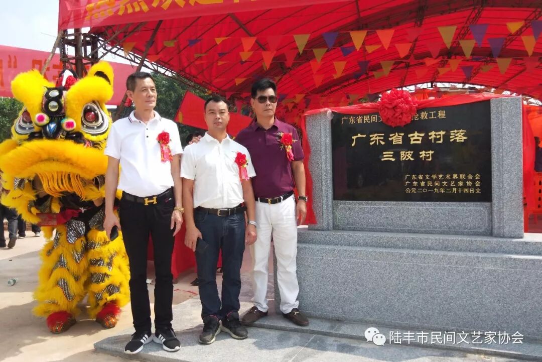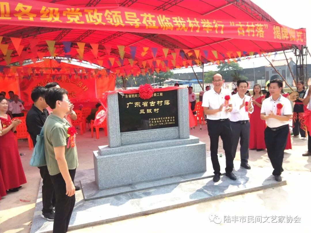 汕尾市民协主席林木群、秘书长刘金河,陆丰市委宣传部副部长陈炳银、市文联主席郑娟春,市文联副主席、民协主席林岸冰,内湖镇党委副书记、镇长蔡景章等出席揭牌仪式,对三陂村荣获“广东省古村落”表示热烈祝贺,并参加揭牌。