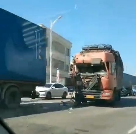 昨天早上,国道G324线陆丰市水墘路段(高铁路口)附近发生一起交通事故,两辆大货车疑似发生追尾,导致后车车头损毁严重!具体情况不详,以官方公布为准。