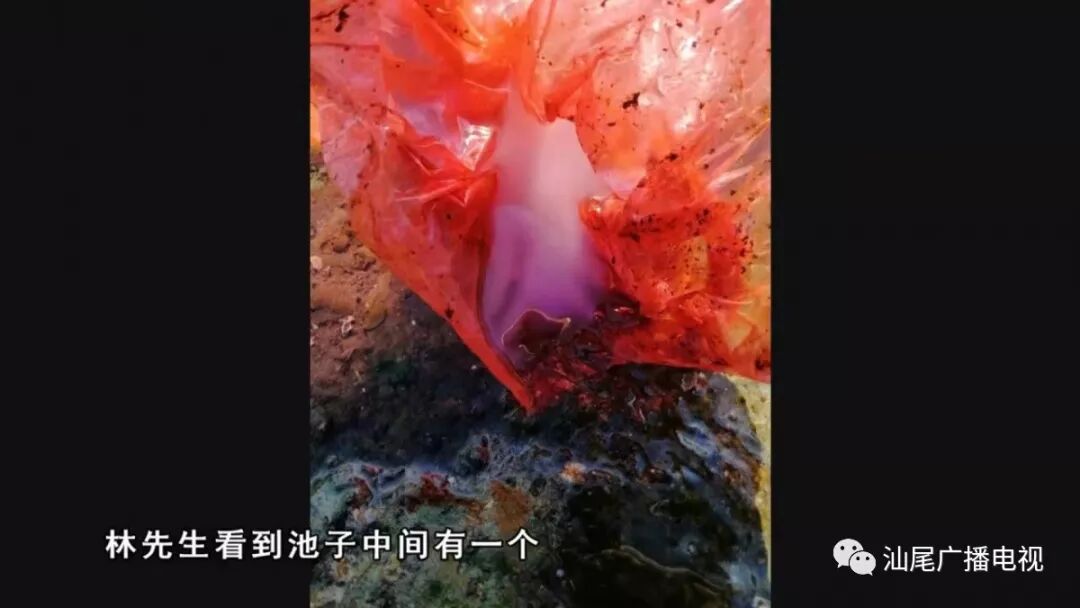 水抽干以后,林先生看到池子中间有一个红色塑料袋,捞上来后查看,发现里面装的是一种白色液体和一块石头,林先生知道这就是罪魁祸首了。随后,林先生马上报了警。