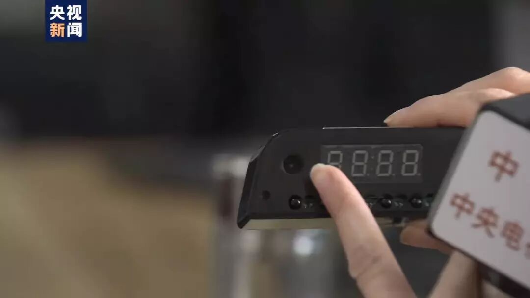 还有偷拍装置伪装成了时钟,这类偷拍装置隐蔽性最好。虽然摄像头会发光,但外面有黑色的屏蔽,无法看到摄像头发出的光。只有把时钟关了,再靠打光的方式才能发现摄像头其实在这里。