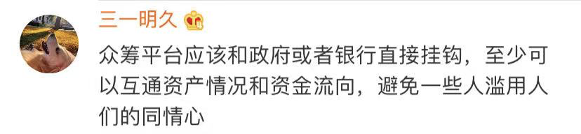 朝阳法院望京法庭庭长王敏建议尽快完善立法、加强行业自律;构建募集资金第三方托管机制,实现网络平台自有资金与募集资金的分账管理、定期公示;建立网络平台与医疗机构的资金双向流转机制,实现筹集款扣划至医疗机构直接用于结算,从而改变目前筹款人直接提现的方式,切实加强爱心筹款的监督管理和使用,降低资金风险。