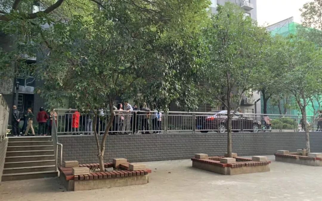 11月8日下午,人群聚集在案发现场的阶梯附近。