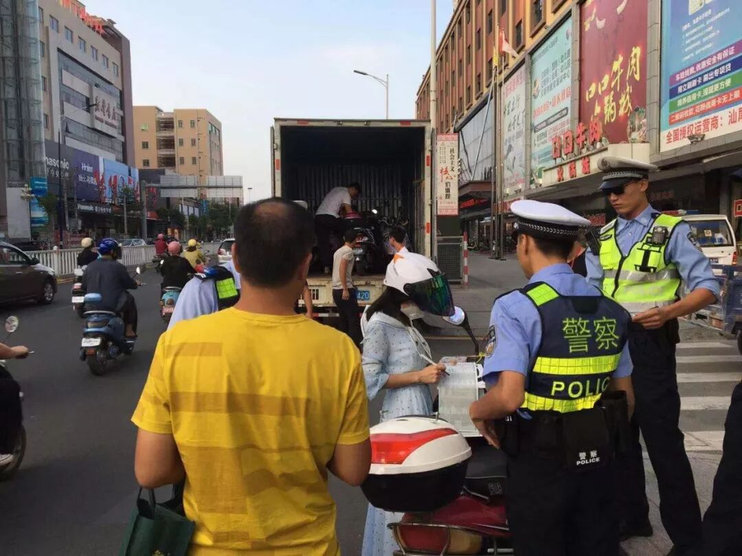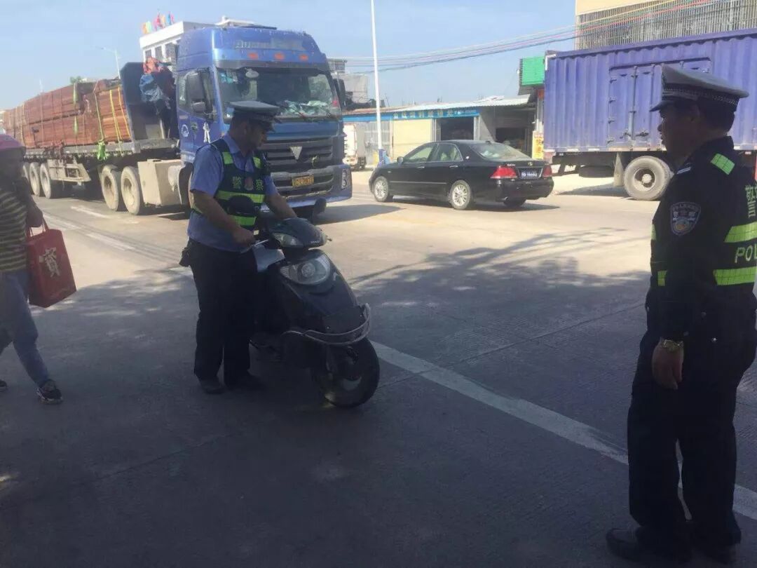 10月31日、11月1日,交警大队在东海镇、甲子镇、碣石镇对驾驶摩托车、电动车未佩戴头盔违法行为进行专项整治,引导群众自觉遵守道路交通法律法规,坚决遏制不文明交通行为。