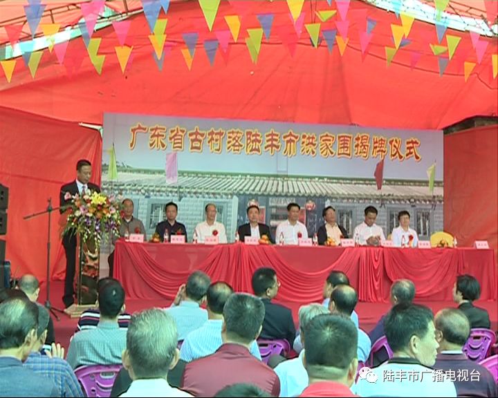 市委常委、宣传部长洪锡鸿、市人大常委会原主任连凯跃和汕尾市民协、陆丰市文联、东海镇、市民协等相关单位负责同志出席活动,对洪家围荣获“广东省古村落”荣誉称号表示祝贺,并共同为“广东省古村落洪家围”揭牌。