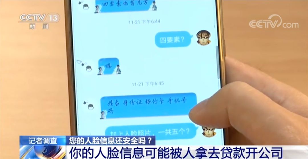 记者在百度一个名为“快眼”的贴吧,也发现有销售者在兜售人脸数据。记者联系到这名销售者,他告诉记者,高清证件照五毛钱一张;另一类商品号称“四要素”,除了照片,还包括姓名、身份证照片、银行卡和手机号,四块钱一份。记者了解到,这些数据可能被用于申请信用贷款,甚至注册公司,给泄露信息的用户带来巨大损失。