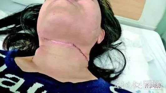 “11月14日下午两点多,山东泰安的张女士正骑车去上班,由西向东路过南湖公园北门时,忽然脖子一疼,从电动车上摔下来了。她用手一拽,才发现是被一条风筝线撂倒了。更吓人的是,风筝线从的脖子割了过去!伤口大概有15毫米深,缝了三十多针,羽绒服也被割破了。