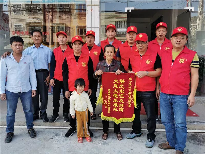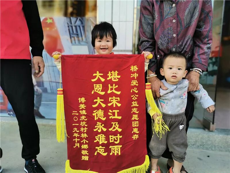 11月8日,在这个充满收获的季节,陆丰市博美镇虎坑村林小娜的老母亲和两个孩子以及两位亲戚,带着一面装着无限感激的锦旗,送到了桥冲爱心公益志愿团办公室,将锦旗赠与志愿团留念以表谢意。