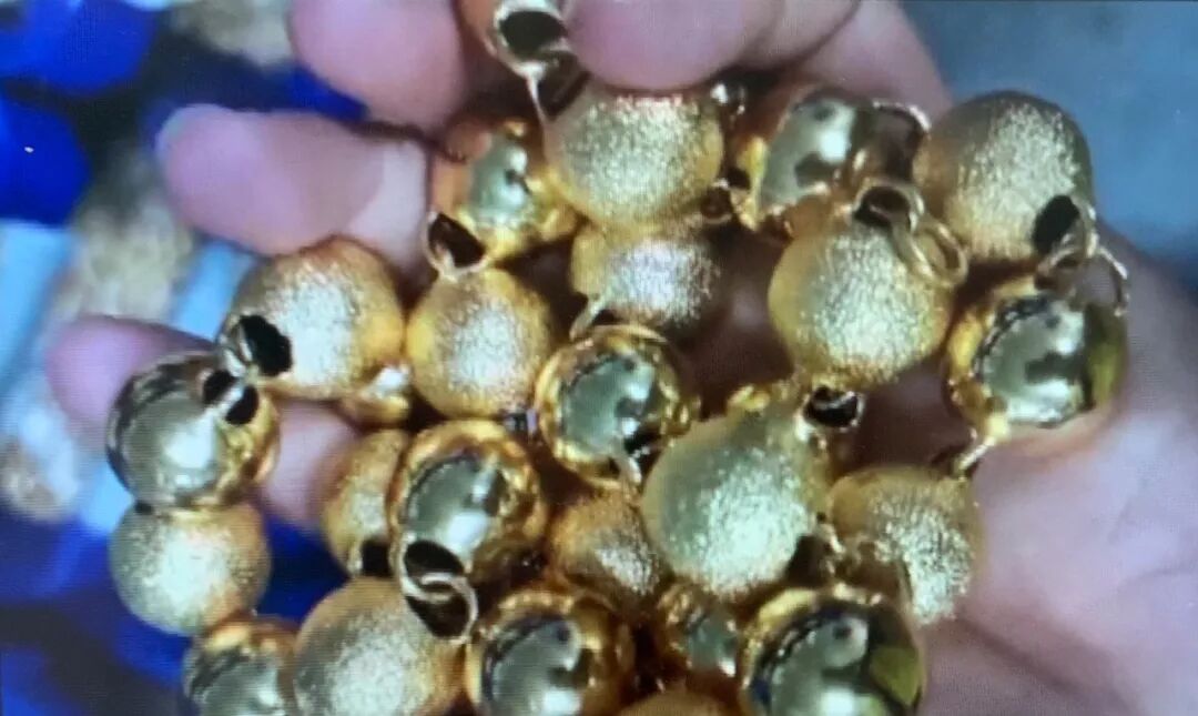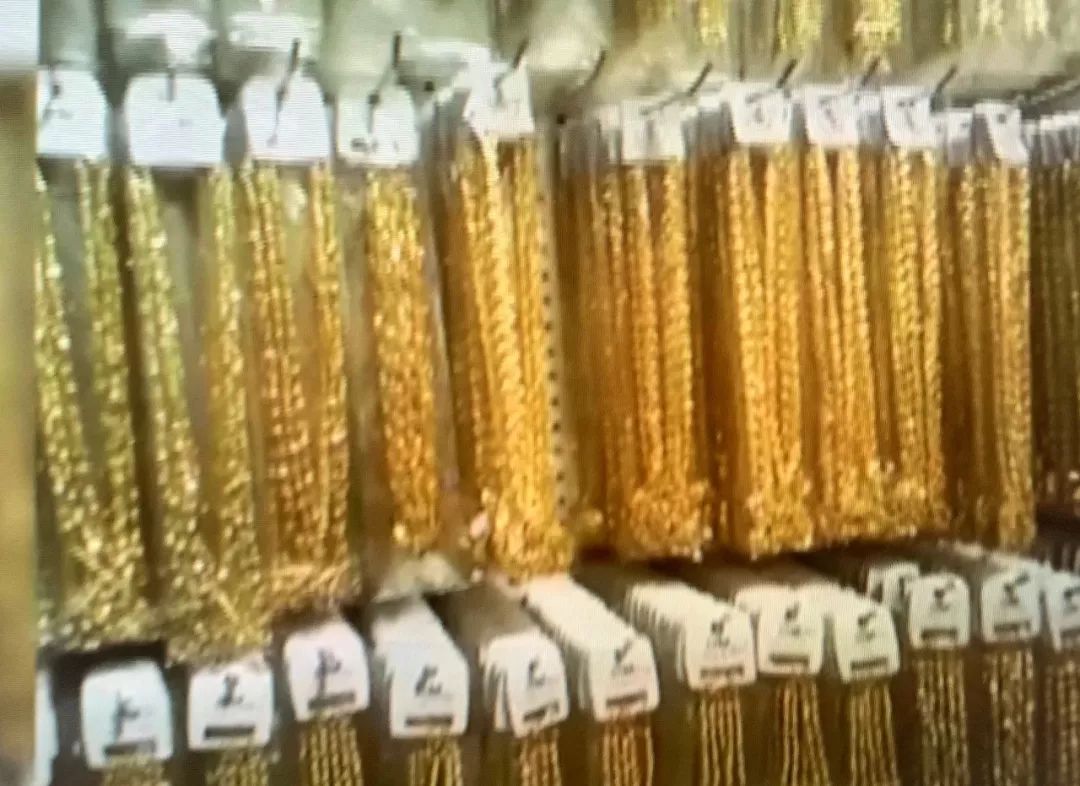 他告诉记者,自家的这些“沙金”首饰,拿去零售绝对可以以假乱真,当记者表示疑惑时,他告诉记者,镇上的饰品厂很多都是做这个生意的,不放心的可以再多走几家看看。