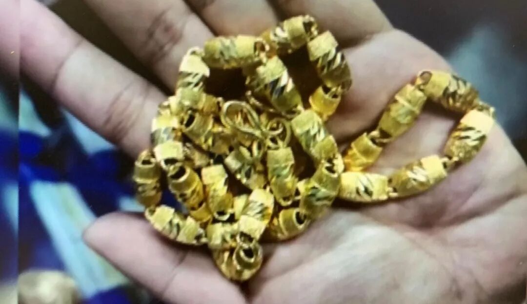 记者注意到,这些廉价的项链、戒指等沙金首饰,不仅拥有金灿灿的外观,在质感上也和黄金极为相似。
