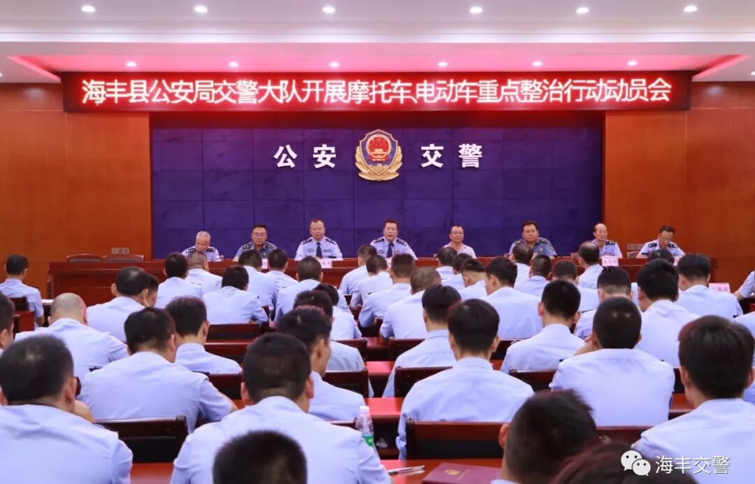 2019年11月4日20时,海丰县公安局交警大队在交警大队五楼会议厅召开开展摩托车、电动车重点整治行动动员会。参加会议的有县公安局党委委员、副局长陈克平、交警大队全体民警、职工、辅警,县住建局、交通运输局、县市监局负责同志。