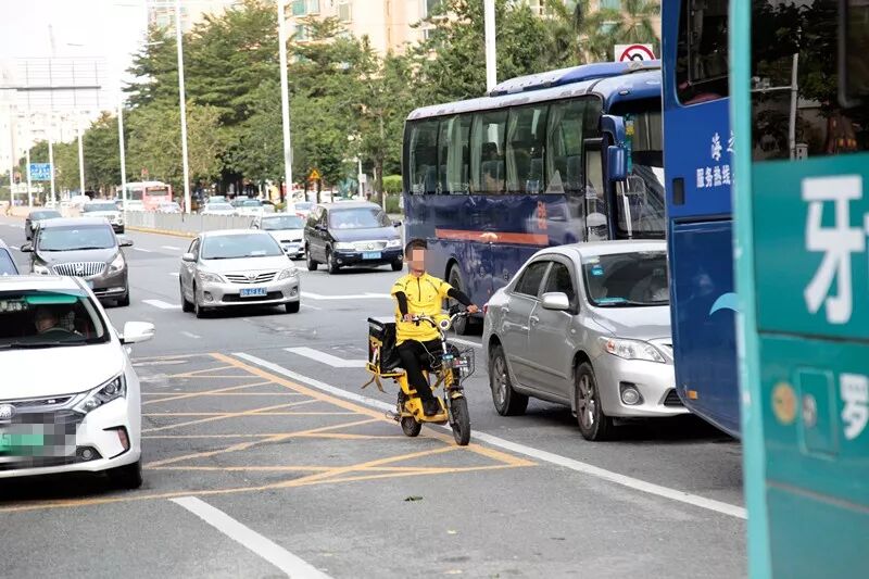 非机动车要与直行大型汽车保持3米以上的安全距离;