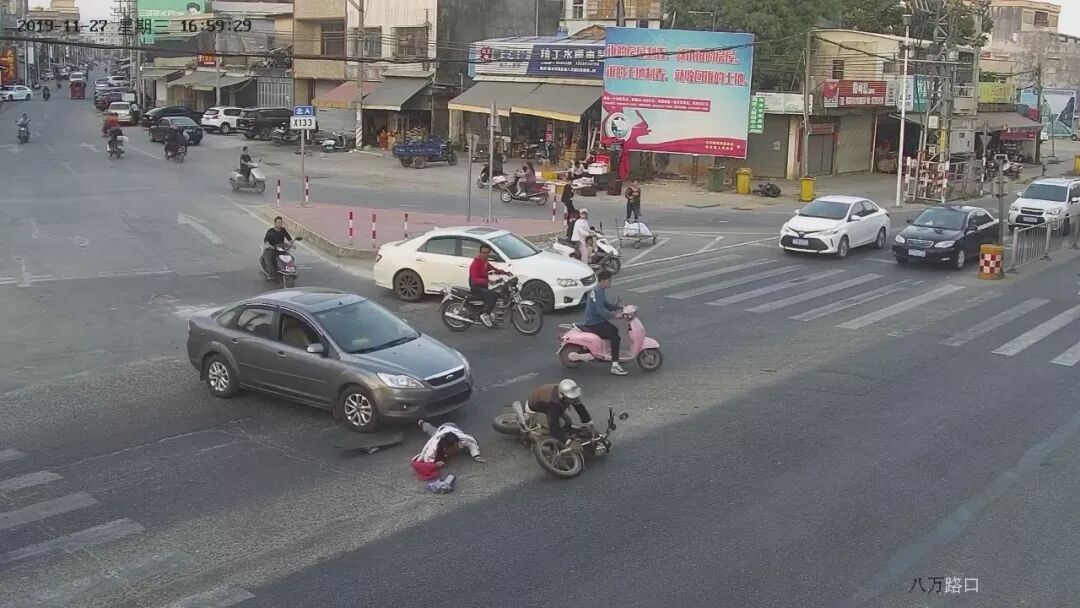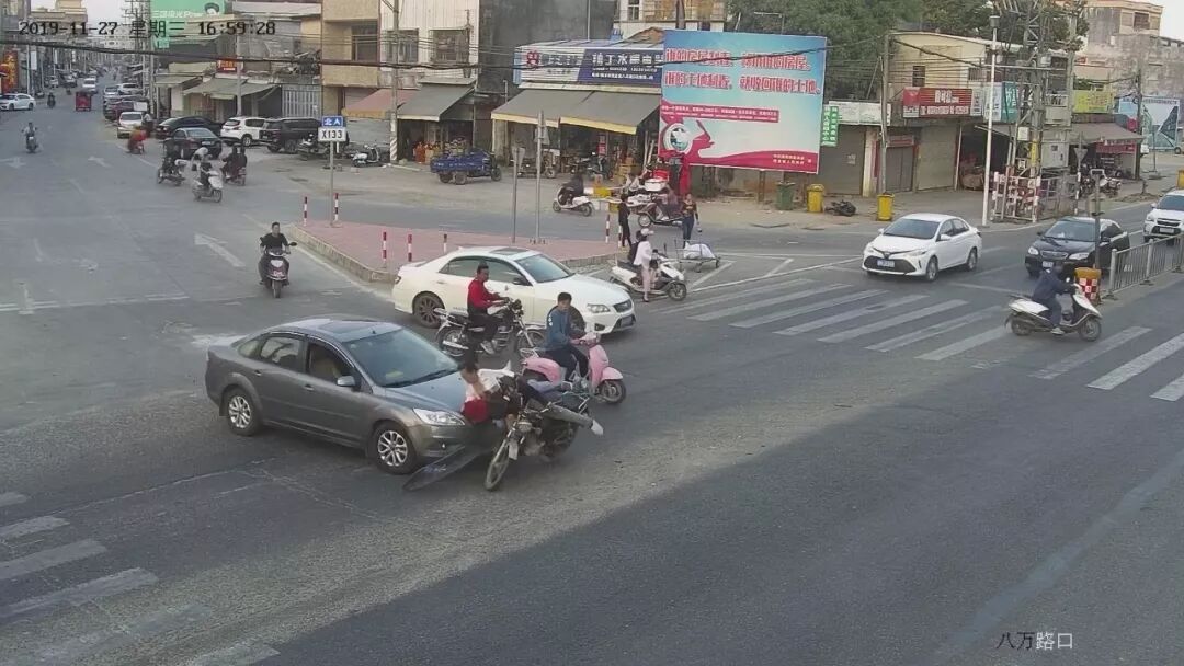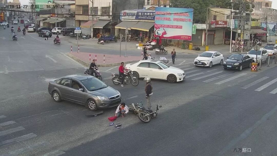 2019年11月27日16时59分许,一男子驾摩托车载着一名女乘客沿324国道陆丰博美路段东往西方向行驶至八万路口时,与一辆准备往国道左转东行的小车发生碰撞,事故造成摩托车女乘客瞬间被甩趴,摔倒在地。女乘客未佩戴安全头盔,所幸无大碍!