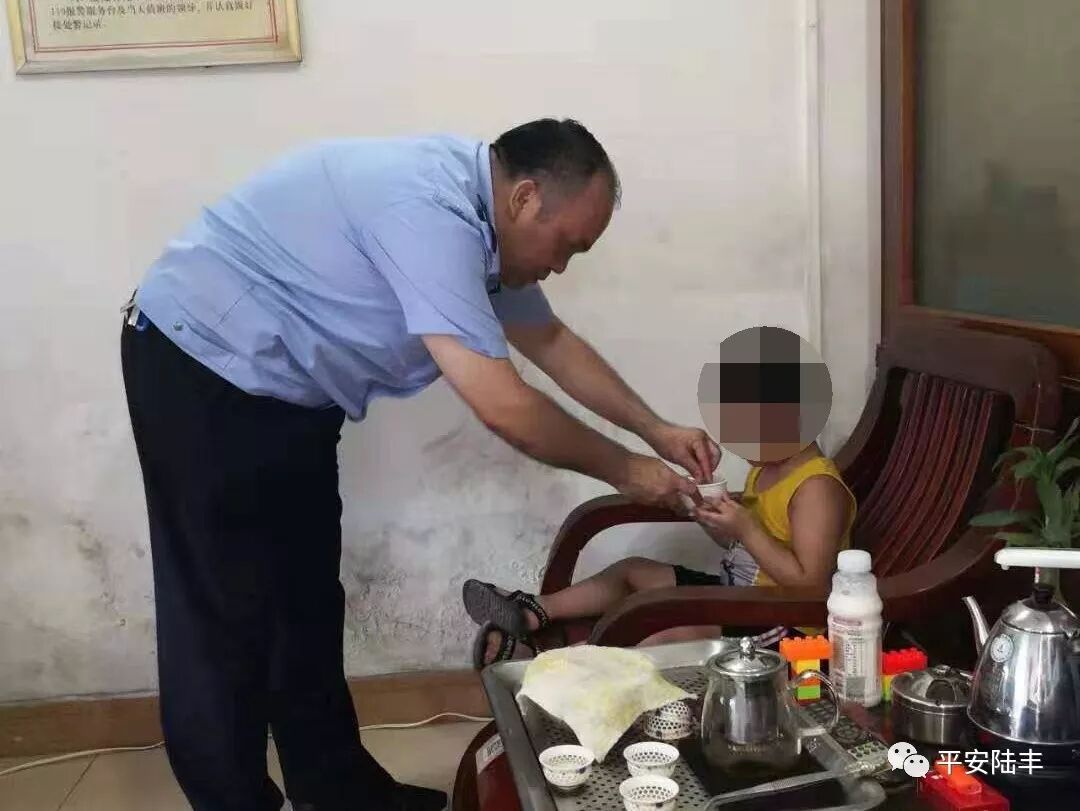 派出所迅速出警找到小孩,并抱着小孩在附近商铺向过往群众走访询问,但都没能找到该小孩家长,只好将其带回派出所。在派出所值班室,在值班民警的细心安慰下,小孩因找不到家人而不安的情绪逐渐平静下来。民警一边给孩子买来食物与水,细心照顾,一边通过朋友圈、微信群等渠道发布消息,寻找孩子的家长。