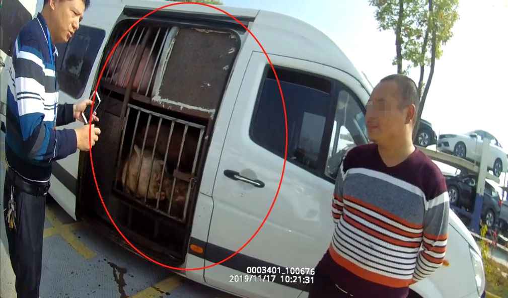 11月17日上午9时许,韶关高速五大队民警正在武深高速公路巡逻,发现一辆豫A车牌号的小客车内传出阵阵猪叫,同时小客车行驶中还左右摇晃,民警随即示意该车靠边停车接受检查。