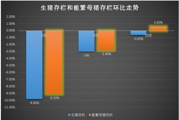 目前,全国能繁母猪存栏环比止降回升,10月份能繁母猪存栏环比则增长0.6%。