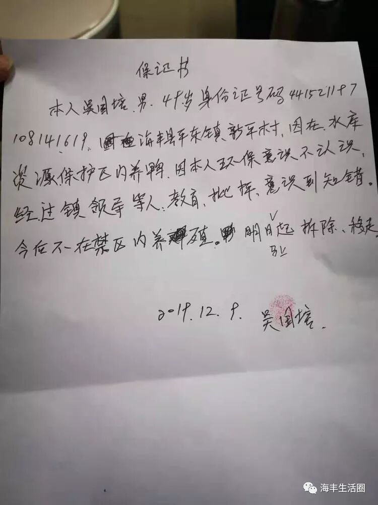 2019年12月9日下午,海丰平东镇城乡综合管理队在开展环保巡查过程中,发现位于新平村委赤油村水库旁存在非法养殖行为。经查,养殖场主为赤油村民吴某锦、吴某培。此养殖场位于一级饮用水源公平水库旁,该行为违反了《中华人民共和国环境保护法》、《广东省饮用水源水质保护条例》、《畜禽规模养殖污染防治条例》及《海丰县畜禽养殖功能区划分方案》等有关规定,平东镇工作人员立即对该养殖场进行查封,责令其立即整改,恢复土地原貌,并联合派出所民警依法对养殖场主进行传唤,已将相关情况上报汕尾市生态环境局海丰分局,要求其对非法养殖行为依法依规进行严厉处罚。