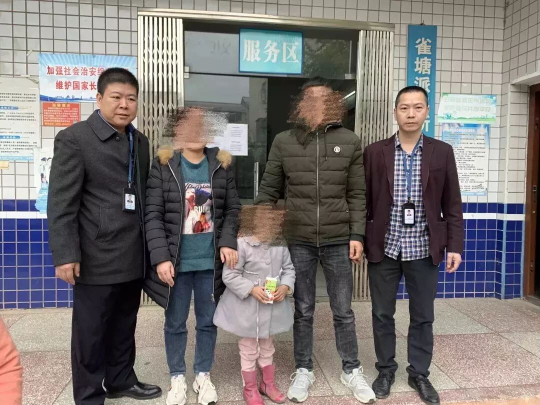 11月29日,失散家庭钟某合家到派出所敬赠一面书写“千里解救、情暖民心”的锦旗,向民警致敬。