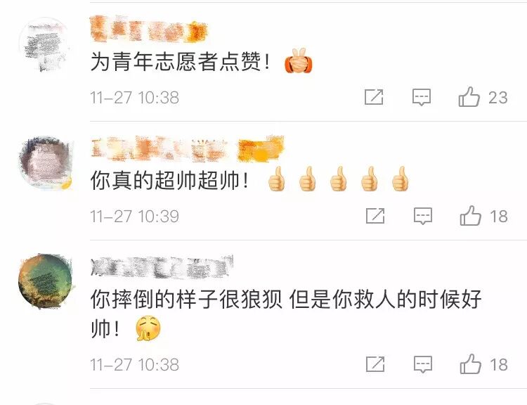 在地上连滚带爬地踉跄了几下后,他立即站起来,及时按下了电梯的紧急暂停按钮。在他的帮助下,摔倒的乘客及时被扶起,避免了一场事故,他自己的膝盖却蹭破了一大块皮。