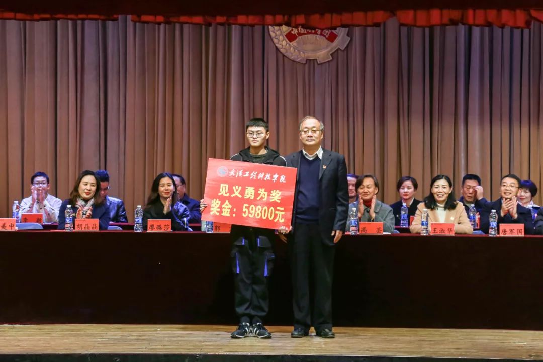 9日下午,武汉工程科技学院举行2019年奖学金表彰典礼,学校对获得校级奖学金、国家奖学金等的学生进行表彰奖励,其中在地铁救人的见义勇为模范余涛宏获得59800元奖励。面对“大奖”,余涛宏耿直回应:“没想到!这一切来得太突然了!”