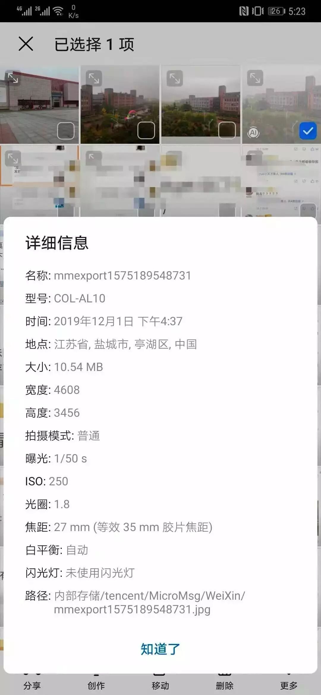 记者将两位微信好友发来的原图下载到手机,通过手机相册可直接查看到位置信息以及拍摄者的手机型号。