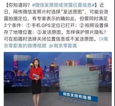 据江苏广电总台城市频道报道,近日,有消息称用微信发照片时选择“发送原图”,可能会泄露拍摄定位,有专家表示的确如此,但需同时满足3个条件: