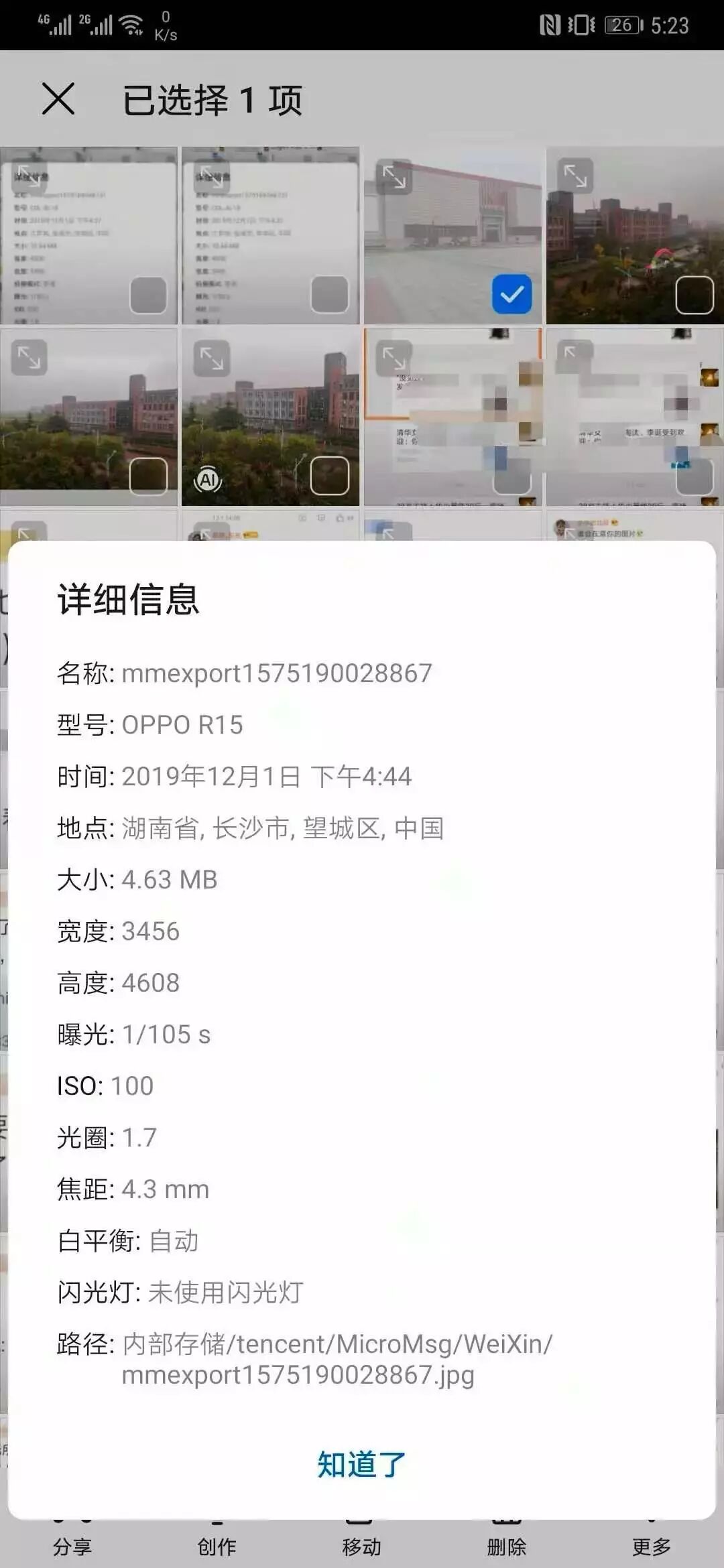 当手机定位打开且拍照设置保存了地理位置,微信发照片时选择发送原图,能泄露多精确的拍摄定位呢?记者对此进行了测试。