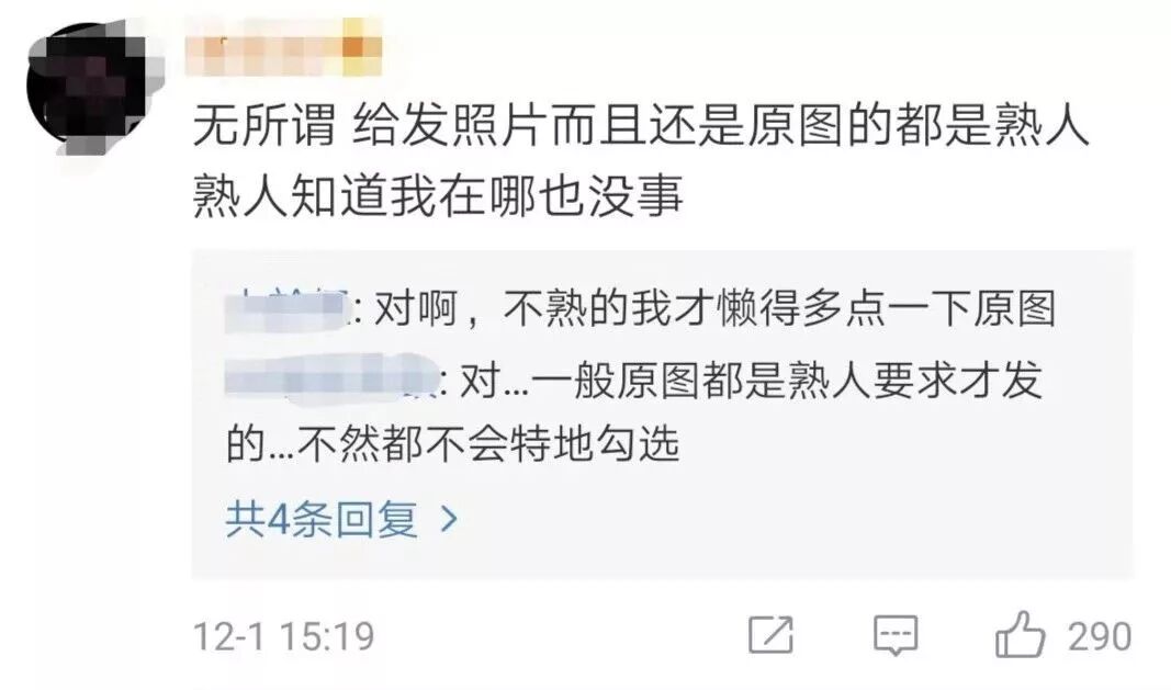 也有网友认为,无所谓,能让自己发原图的都是熟人。