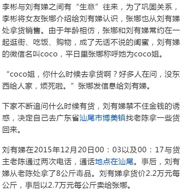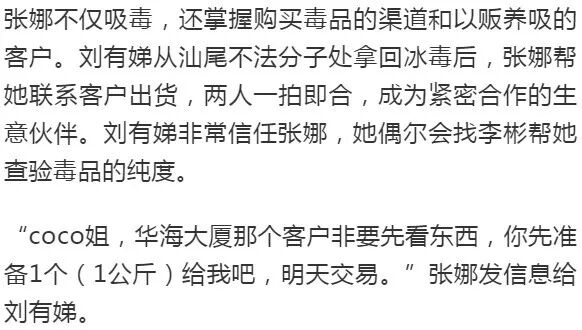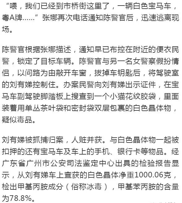 随着侦查深入,公安机关提取到的电子证据显示,案发前一天,刘有娣去过汕尾市博美镇,且微信聊天记录里面出现“交易的时候,没你的指纹啊?抓你回去验尿、电话卡扔掉、能找到大麻吗?”等疑似毒品交易的大量行话、黑话。