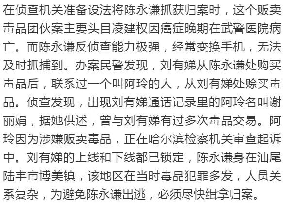 最终,广东省高级人民法院撤销一审无罪判决,判处刘有娣无期徒刑,剥夺政治权利终身,并处没收个人全部财产。也许是巧合,6月14日当天,刘有娣的毒品上家陈永谦案也移送检察机关审查起诉了,涉案毒品数量达到了22.8公斤。