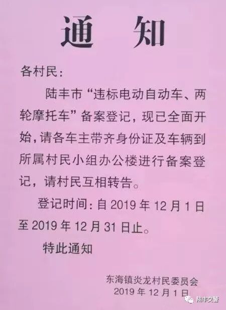 “违标两轮车”备案登记全攻略!陆丰车主您准备好了吗?