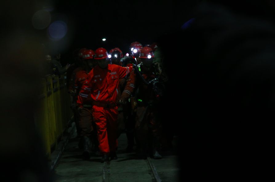 12月18日7时56分,在被困地下313米深处80多个小时后,13名煤矿工人全部成功升井。14日透水事故发生后,13支、共251人的专业救援队伍奔赴营救现场,救援人员分梯队轮流进入井下开展搜寻、排水、清淤、通风等工作。提升排水能力是此次救援的最大难题:起初井下水位每小时上涨445毫米,水位标高不断增加、最高时达138米,高出受困人员所在的巷道口8米。指挥部迅速指挥封堵透水点、抢修受损电缆和通风系统、不断调集大排量水泵排水。![]()