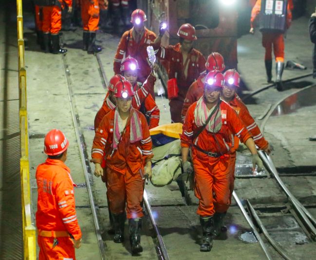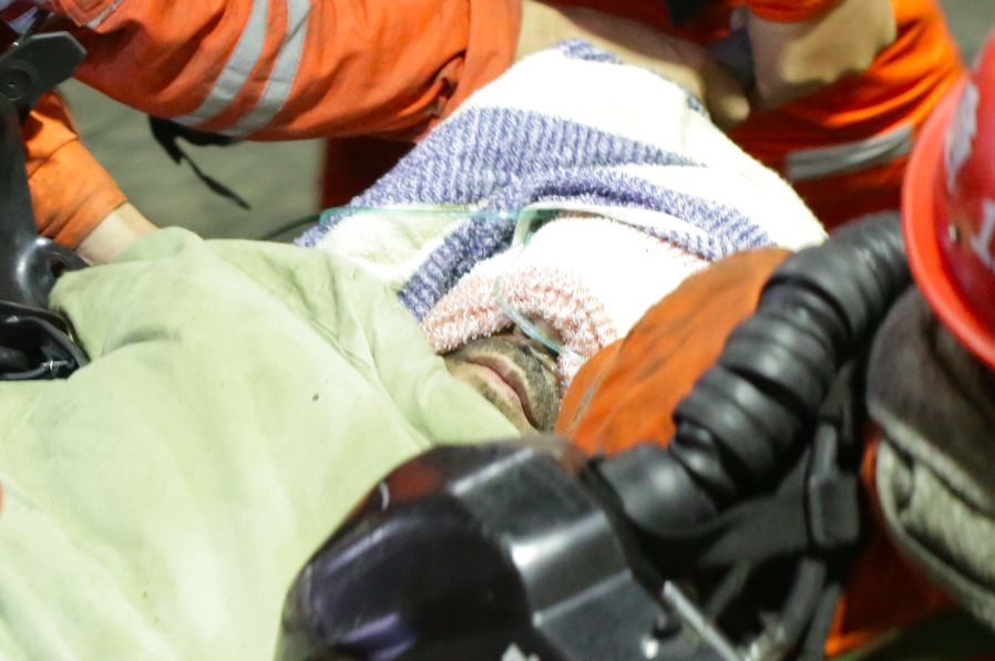 5时55分,首批2名被困人员从地下300多米深处被救出洞口。