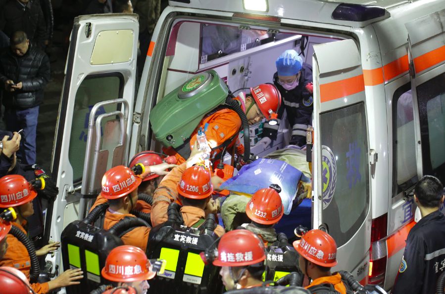 获救矿工先是通过矿上的小火车转运到井口,然后通过担架转运到急救车上。两辆急救车随即将他们转运到医院,进行下一步的抢救。此时,救援现场守候的人群中响起阵阵掌声,救援指挥部里也一阵欢呼,大家鼓掌相庆,为这一生命奇迹欢呼。按照指挥部统一安排,13人分批升井后,就近送往宜宾市矿山急救医院、珙县人民医院、珙县中医医院救治。在现场参与救援的宜宾矿山急救医院副院长张小明说, 13名幸存者的生命体征,心跳、脉搏、意识,“状态良好,比想象中好。”