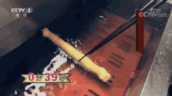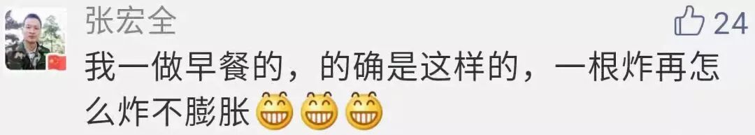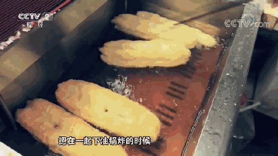 实际上,当单根油条下入油锅后,沉在锅里好一会儿才浮到油面上,师傅同样用筷子不停地翻转,虽然也有膨胀的迹象,但是膨胀了一会儿就停止不动了,膨胀的速度远不如两根一起炸得明显。