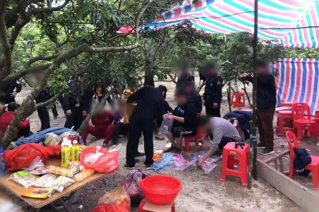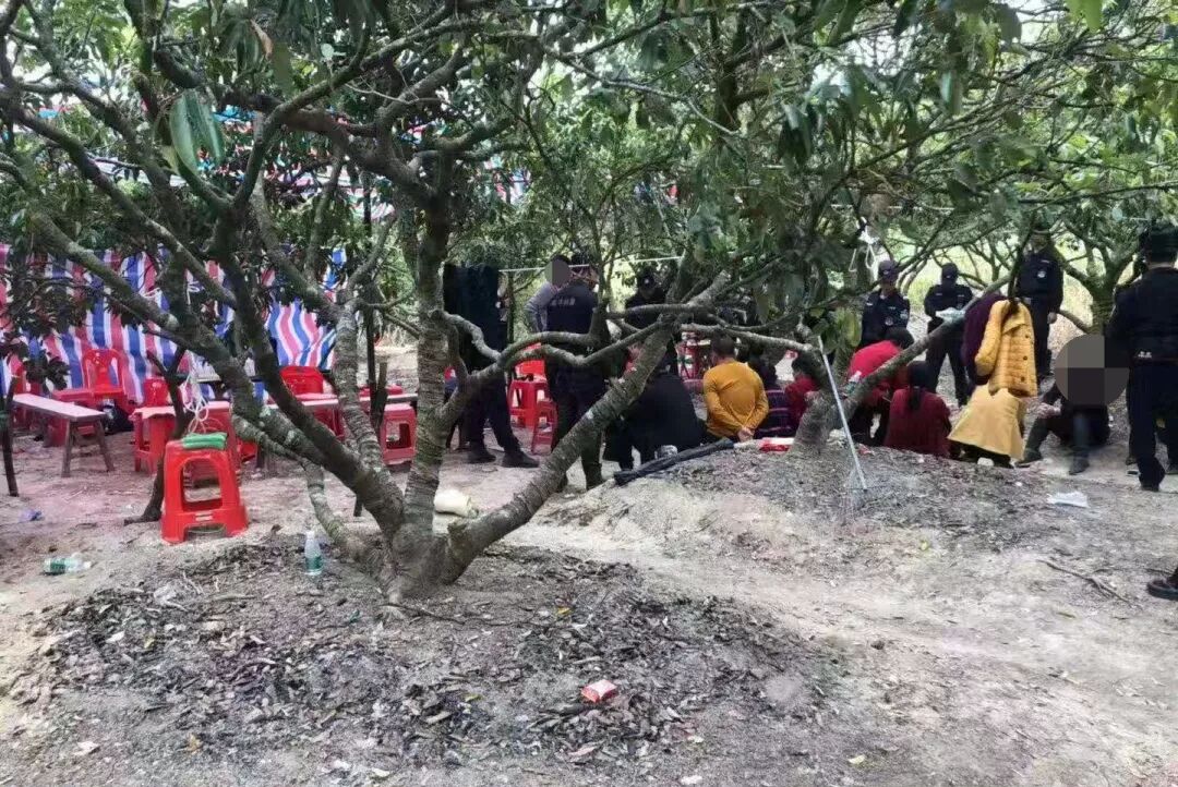 近日,在位于铜锣湖农场西岭村后壁溪的荔枝园里经常有人出入,迹象可疑。公安机关获悉后,马上展开调查,发现有人在该处开设赌场,以“暗宝”聚众赌博。民警在侦查中还发现,该赌博窝点场地开阔,有专人放哨,给警方抓捕带来较大难度。