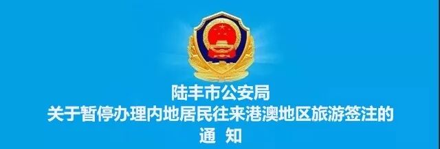 接上级部门通知:根据防控新型冠状病毒感染肺炎疫情工作需要,为保障内地游客和港澳居民生命安全身体健康,自即日起暂停办理内地居民往来港澳地区团队旅游、个人旅游签注,恢复时间将另行通知。感谢您的理解和支持。