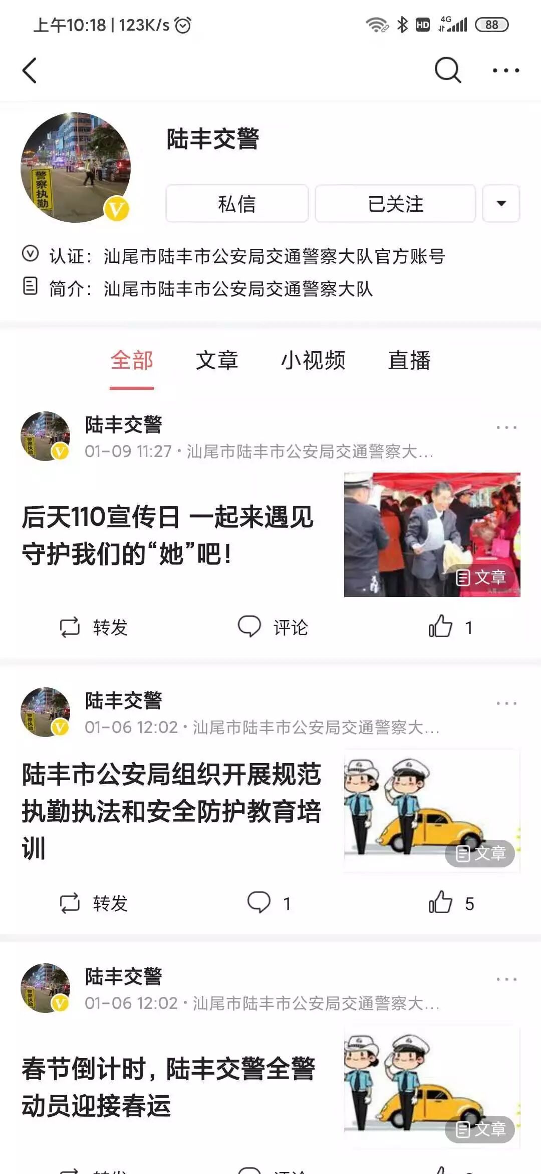 陆丰交警开展122交通安全月宣传活动,深入学校、社区、运输企业开展交通安全宣传宣传讲座,通过微信、今日头条等新媒体发布文章163篇,抖音视频播放量620万次,同时发放宣传资料102000余份,悬挂宣传横幅165条,制作礼让行人等警示牌120个,对各类交通违法行为当事人进行曝光326人次,促使广大民众逐步提高遵守交通规则的自觉性、树立交通安全文明意识。