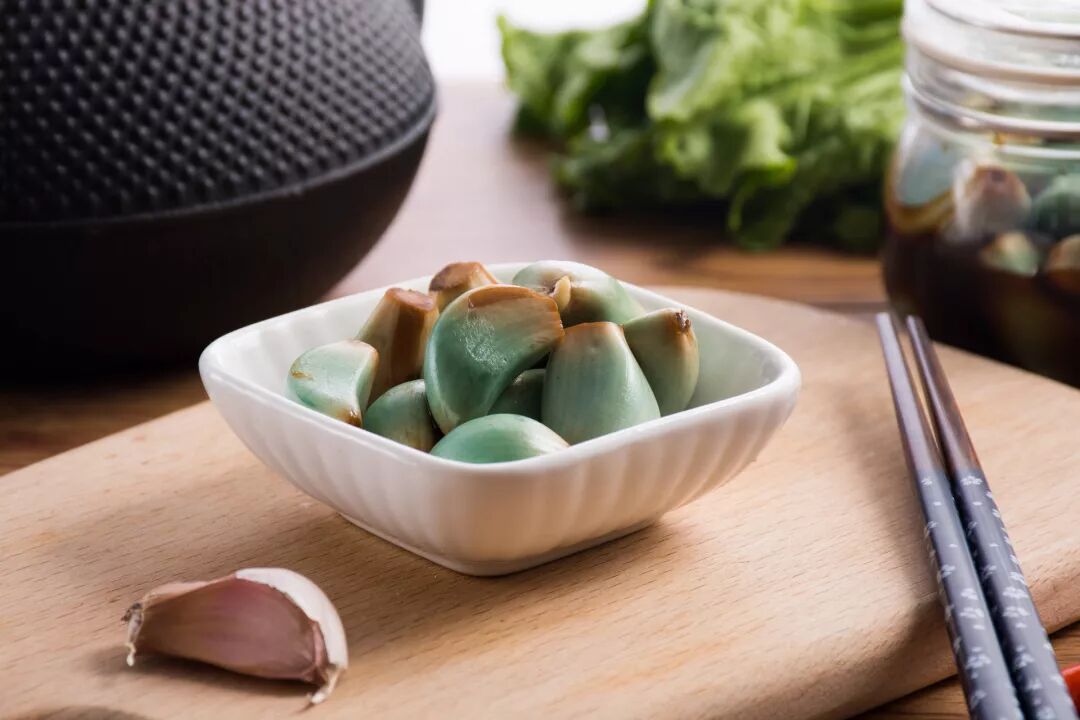 泡腊八蒜是一道主要流行于北方,尤其是华北地区的汉族传统小吃,是腊八节节日食俗。在阴历腊月初八的这天来泡制蒜。其实材料非常简单,就是醋和大蒜瓣儿。做法也是极其简单,将剥了皮的蒜瓣儿放到一个可以密封的罐子,瓶子之类的容器里面,然后倒入醋,封上口放到一个冷的地方。慢慢地,泡在醋中的蒜就会变绿,最后会变得通体碧绿的,如同翡翠碧玉。