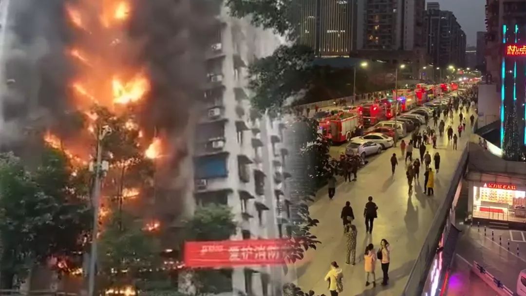 据现场视频显示,起火建筑系一栋高层建筑,有十几层都可见明火。