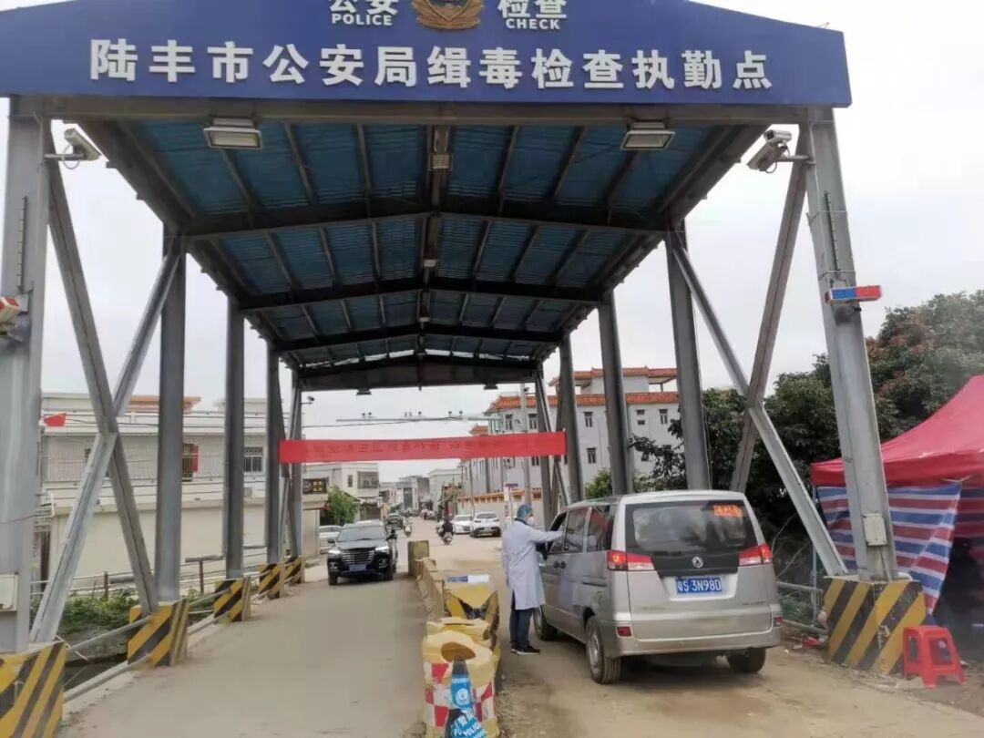 为有效阻断疫情在陆丰进一步传播,陆丰市公安局组织交警、派出所、禁毒突击队、专职队等警力联合市卫健等部门在环陆丰各国、省、县道出入口及高速公路出入口设置8个执勤卡点,实行24小时工作机制,做到“逢车必查、逢人必测”,确保不漏一车、不漏一人,全力阻断输入性疫情、防止疫情在陆丰扩散蔓延。