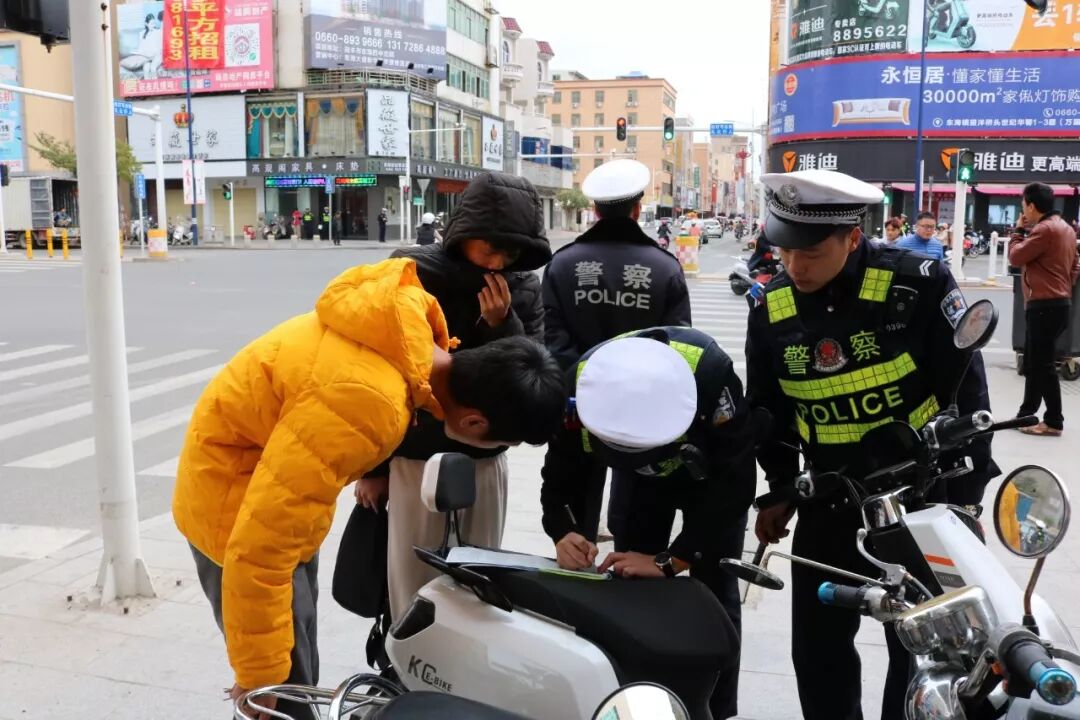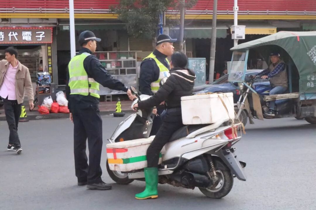 1月16日、17日,陆丰交警大队组织警力在陆城、碣石辖区对驾乘摩托车(电动车)不戴安全头盔、无证驾驶、驾驶无牌证摩托车、闯红灯、逆行、乱停乱放等各类交通违法行为进行查处。