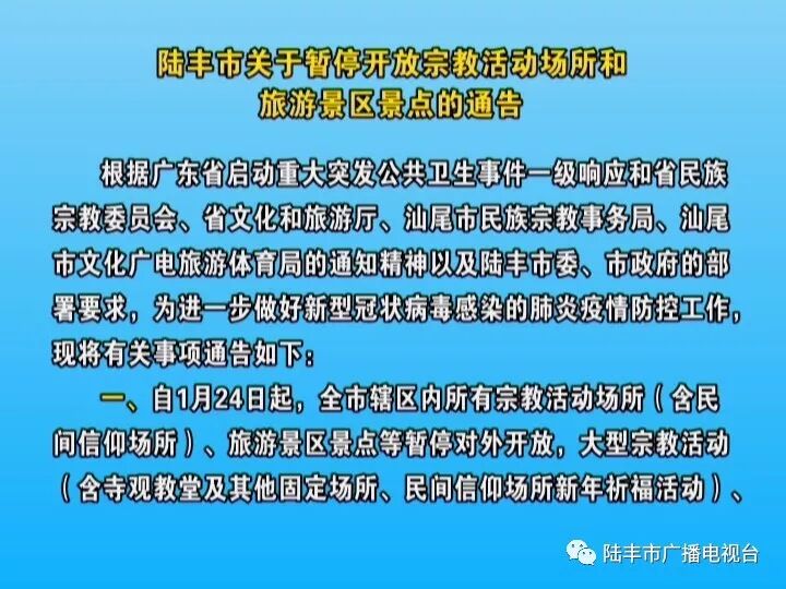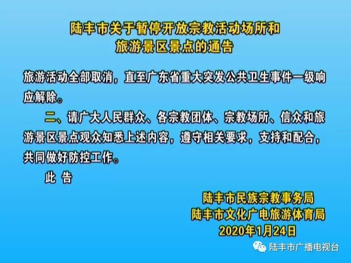 陆丰市关于暂停开放宗教活动场所和旅游景区景点的通告