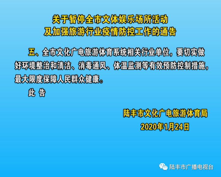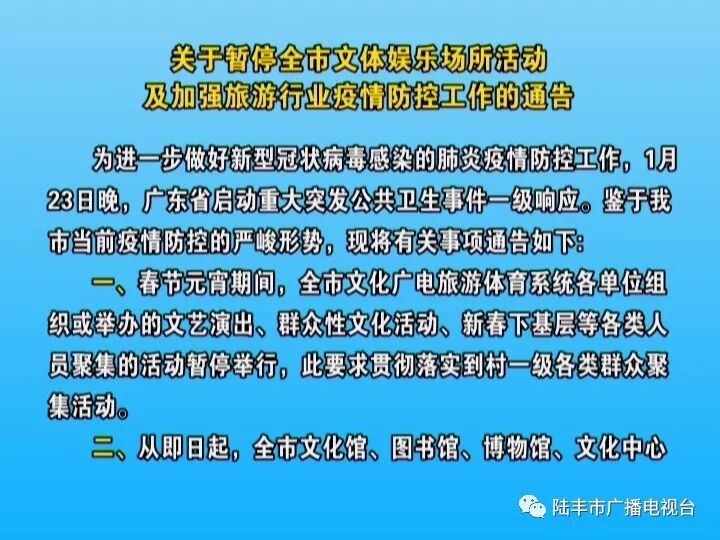 关于取消陆丰市2020年春节元宵期间文体活动的通告