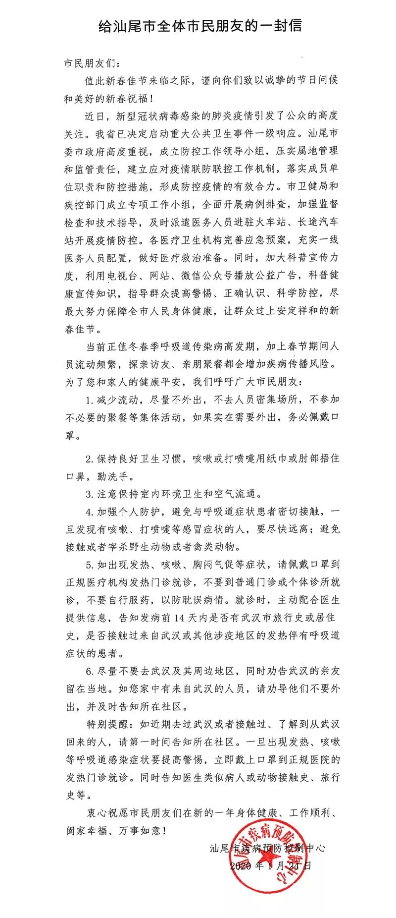 1月24日,我市个别网民在网上转发医务人员上门检测体温的视频,并传播有人疑似感染新型冠状病毒肺炎的网络言论,经核实,属谣言。为应对当前新型冠状病毒感染的肺炎疫情,我市正积极组织力量开展联防联控工作,各地各部门按规程对疫情发生地来陆人员进行摸查并实施必要的健康监测和管理。至25日10时止,我市尚没有发现新型冠状病毒感染的肺炎疑似病例和确诊病例,请广大网民自觉抵制谣言,做到不造谣、不传谣、不信谣,做守法公民。 陆丰市新型冠状病毒感染肺炎疫情防控工作领导小组