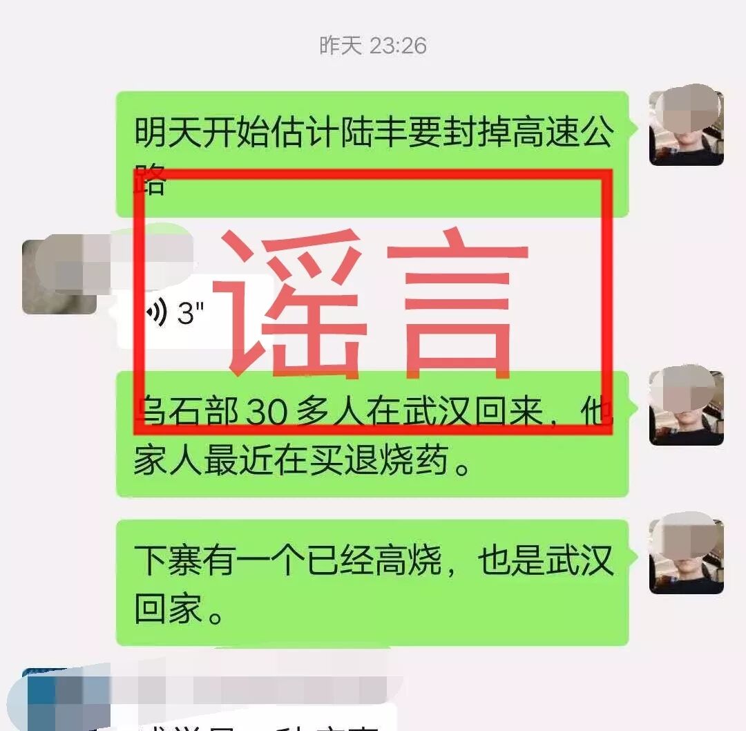 1月25日,陆丰网警部门在工作发现中,我市一微信网民在微信群聊天中发布“明天开始估计陆丰要封掉高速公路”、“乌石部30多人在武汉回来,他家人最近在买退烧药”、“下寨有一个已经高烧,也是武汉回家。”等言论。