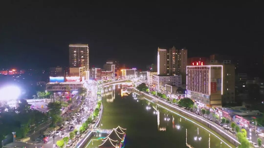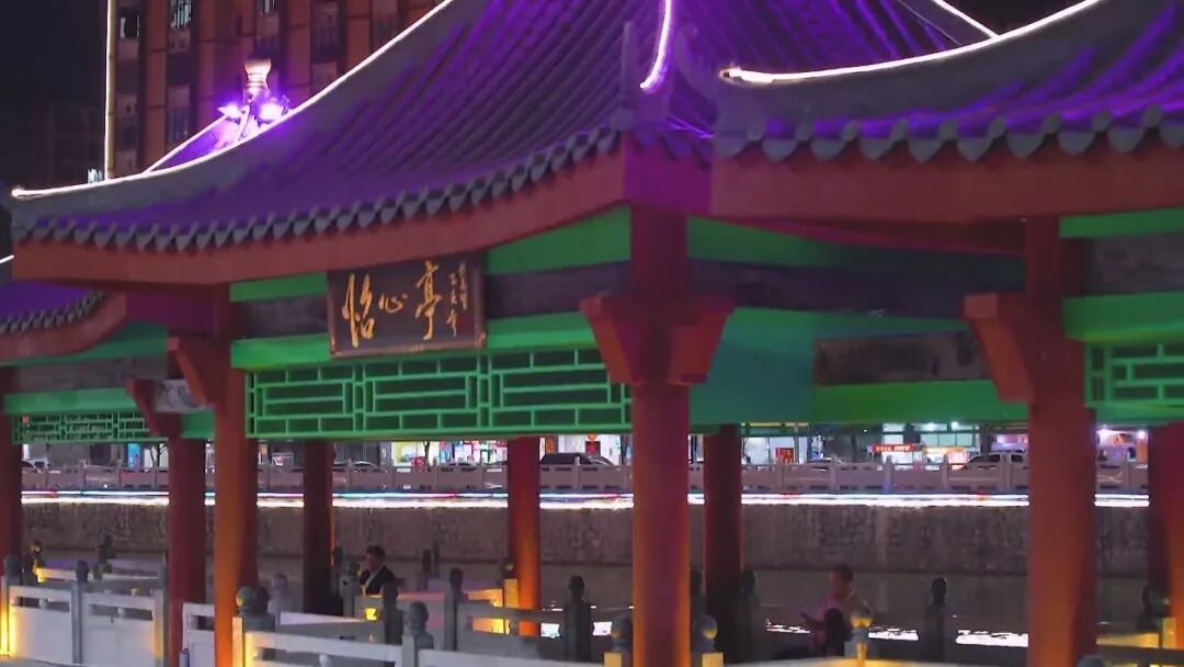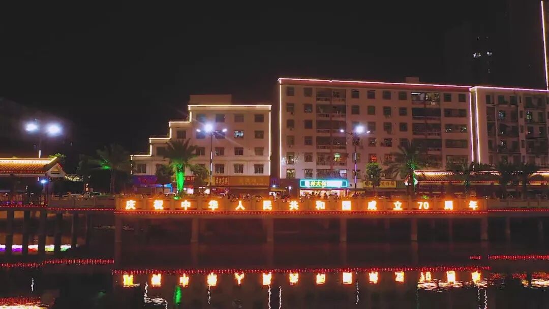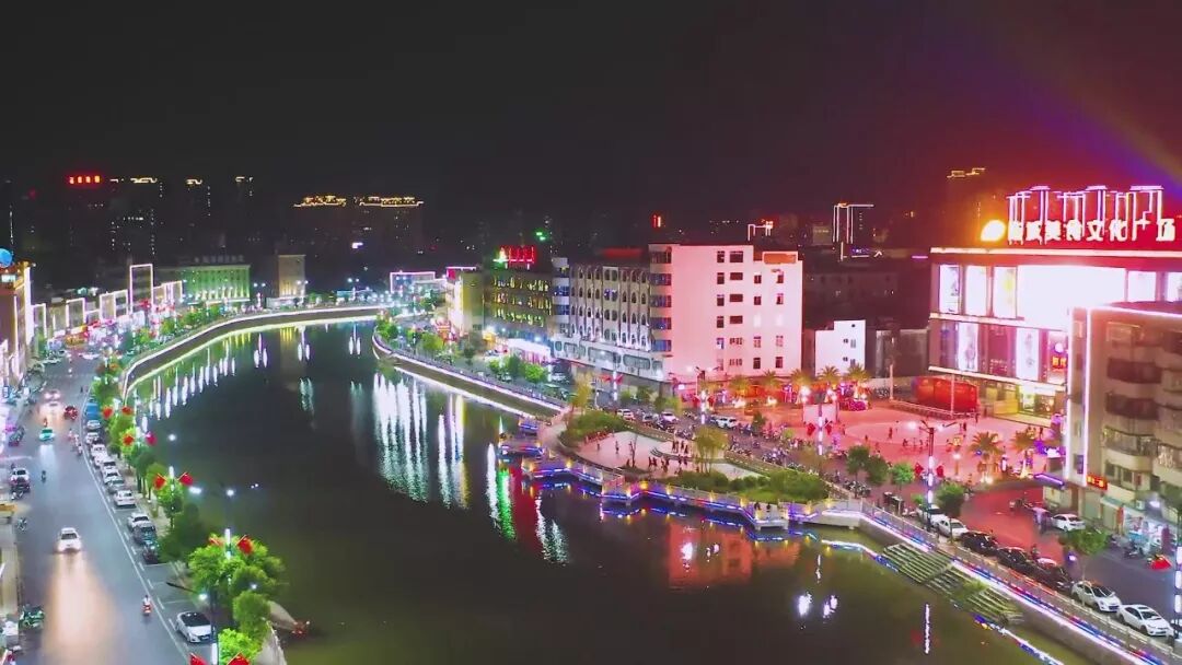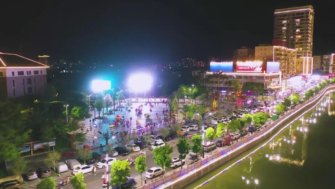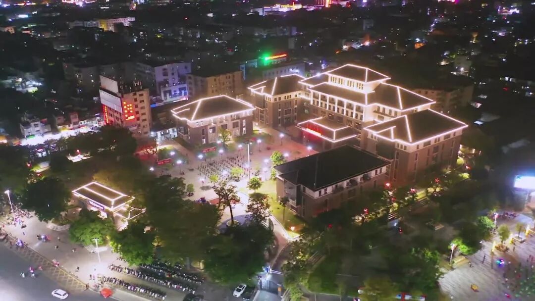 夜幕降临,东海镇两岸的路灯全亮了,快乐的市民在陆丰文化广场跳起了广场舞,闪耀的灯光像一串串明珠似的挂满了城市的四面八方,巨大的建筑上,各种灯串,忽明忽暗,各种光芒交相辉映,照亮了楼房、街道。