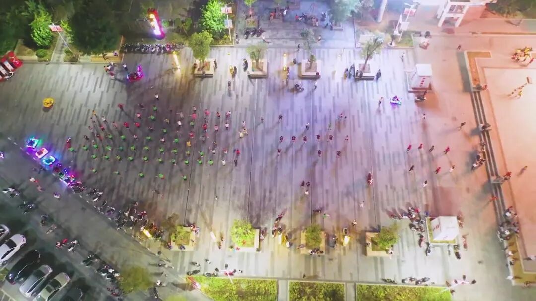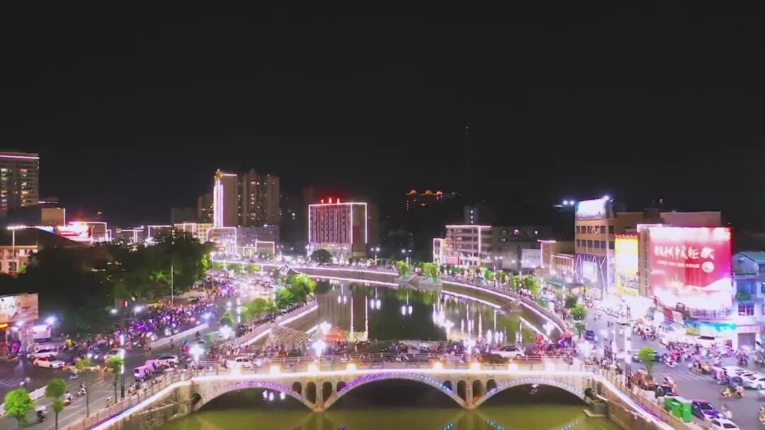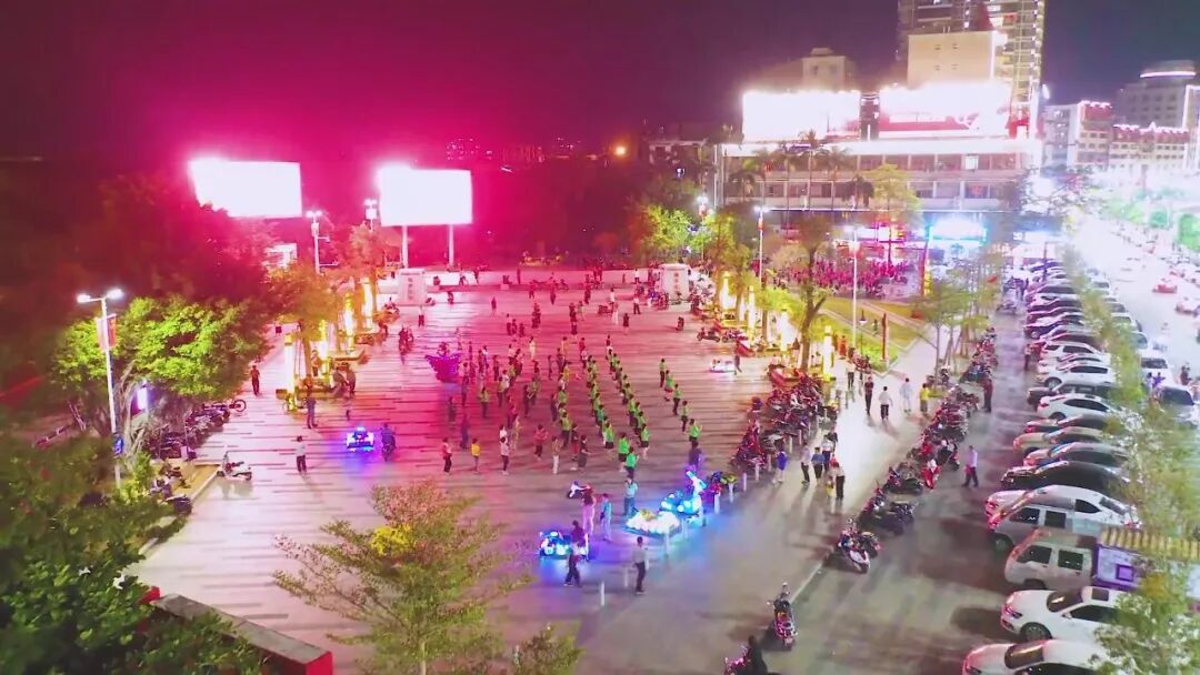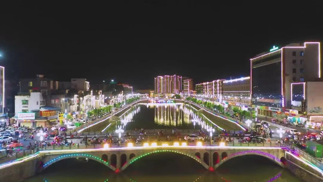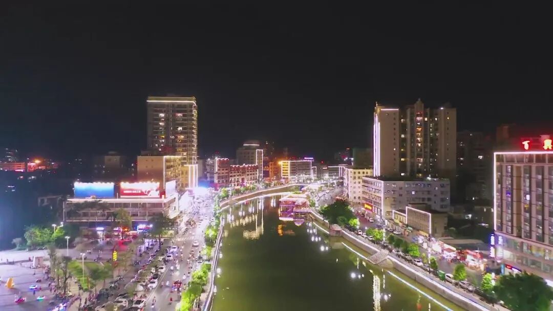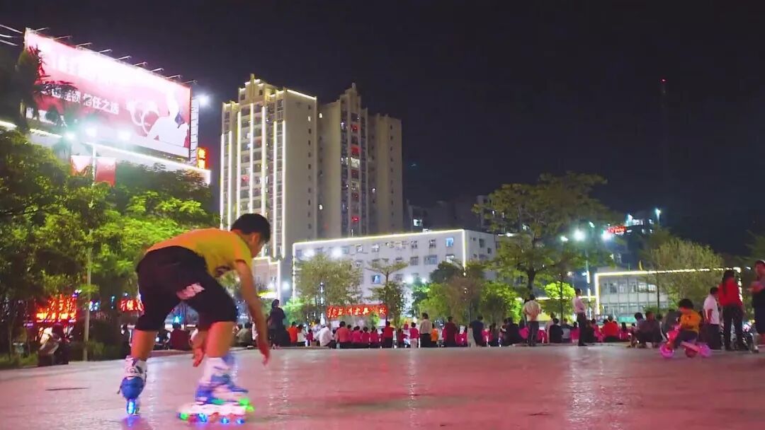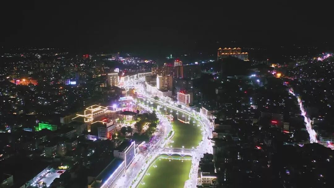 夜幕降临,东海镇两岸的路灯全亮了,快乐的市民在陆丰文化广场跳起了广场舞,闪耀的灯光像一串串明珠似的挂满了城市的四面八方,巨大的建筑上,各种灯串,忽明忽暗,各种光芒交相辉映,照亮了楼房、街道。