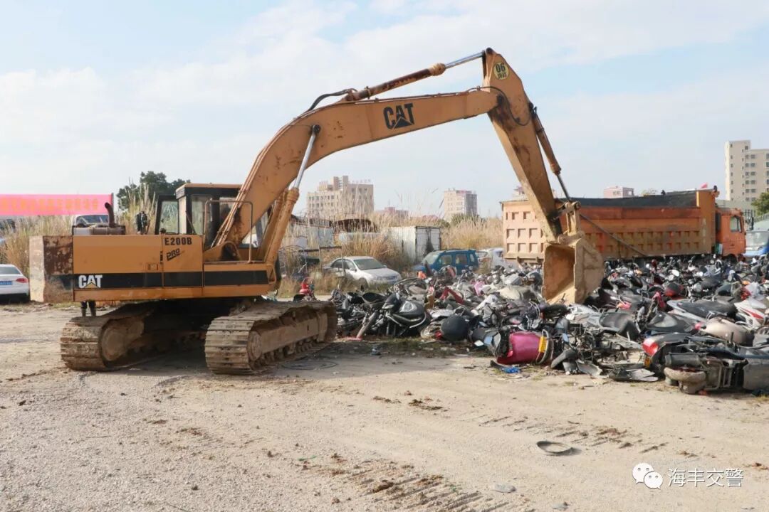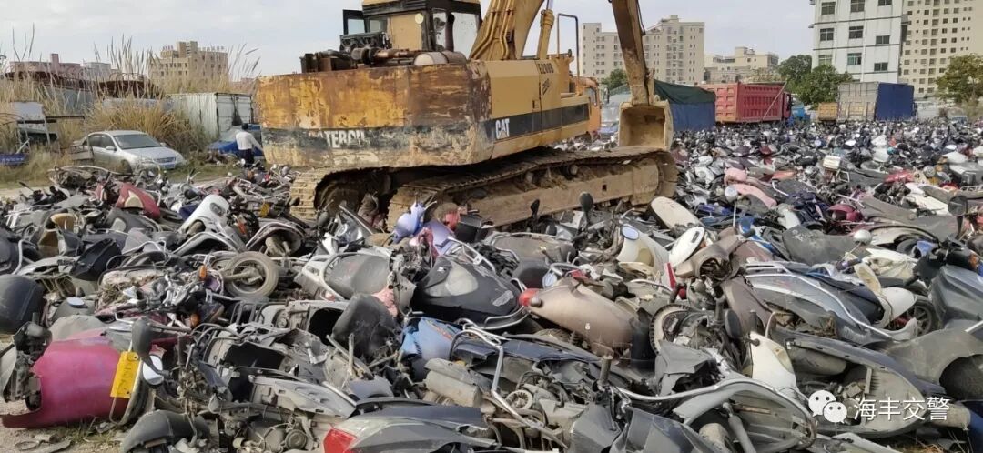 此次销毁的车辆,是交警大队和和辖区各派出所自2019年5月1日至8月31日止,在道路交通安全执法工作中查扣的无牌证及报废的机动车,各类车辆合计2687部,其中二轮摩托车2545部,三轮摩托车106部,大货车2部,六轮汽车8部,小四轮汽车26部。上述的各类车辆于2019年9月10日在汕尾日报予以公告,现公告法定期已满。依照《中华人民共和国交通安全法》第112条和《道路交通违法行为处理程序规定》第36条的规定,予以没收并集中销毁,收回残值上缴国库。![]()
